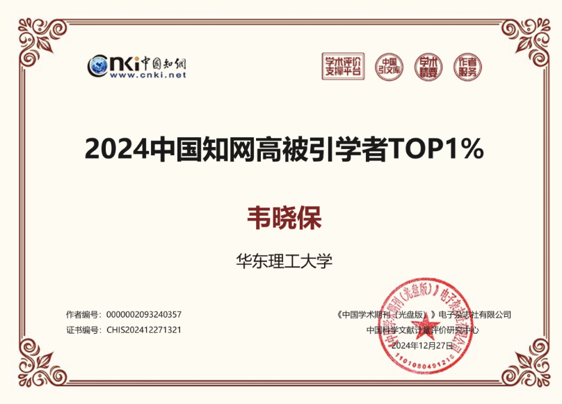重磅!我院教师入选“2024中国知网高被引学者TOP1%”名单